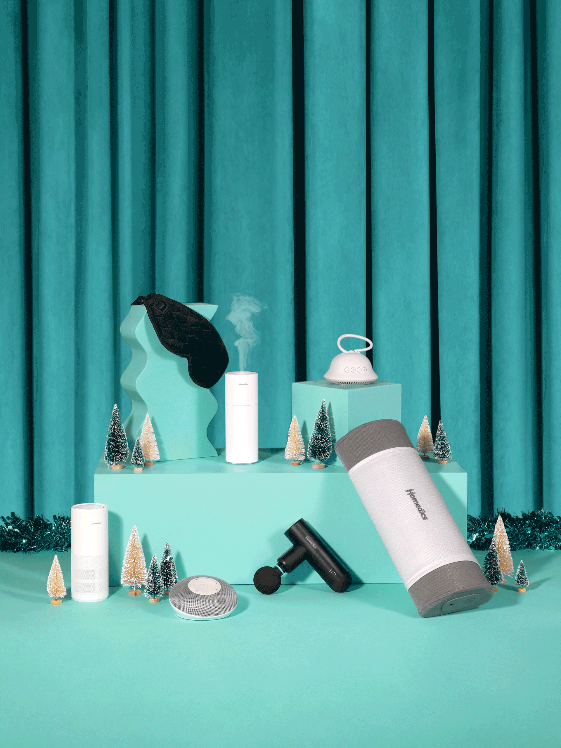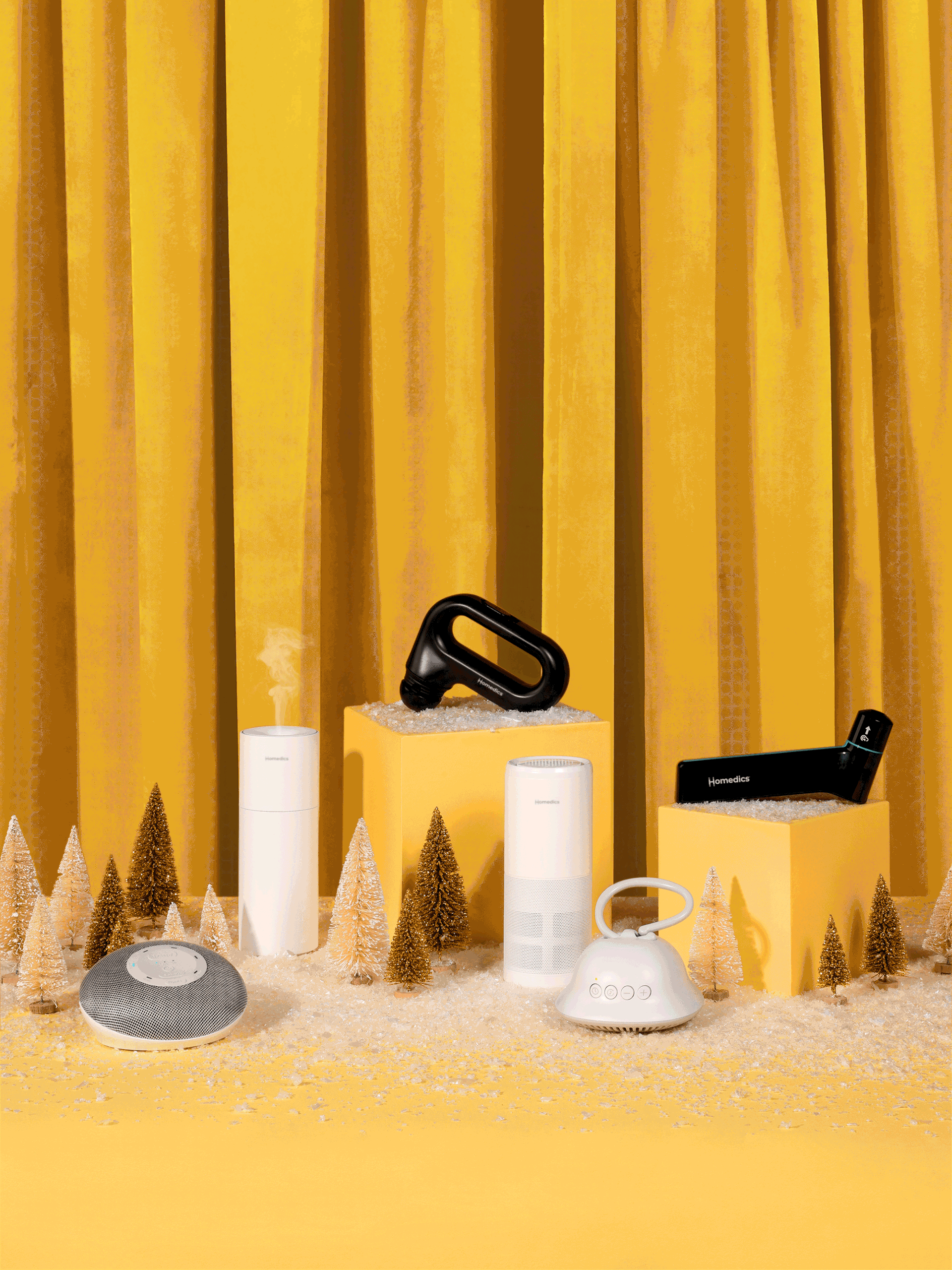 Brought on to art direct, produce and prop style a holiday campaign shoot for Homedics. Each vignette was themed around titles such as The Practical Parent, The Go-Getter, The Self-Care Star, etc. to show the range of home essentials products Homedics has to offer holiday shoppers.